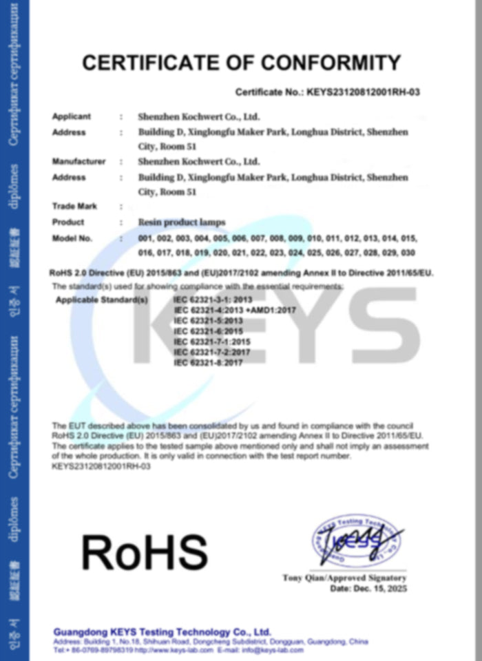 It has passed EU ROHS 20 regulations and obtained the certificate.