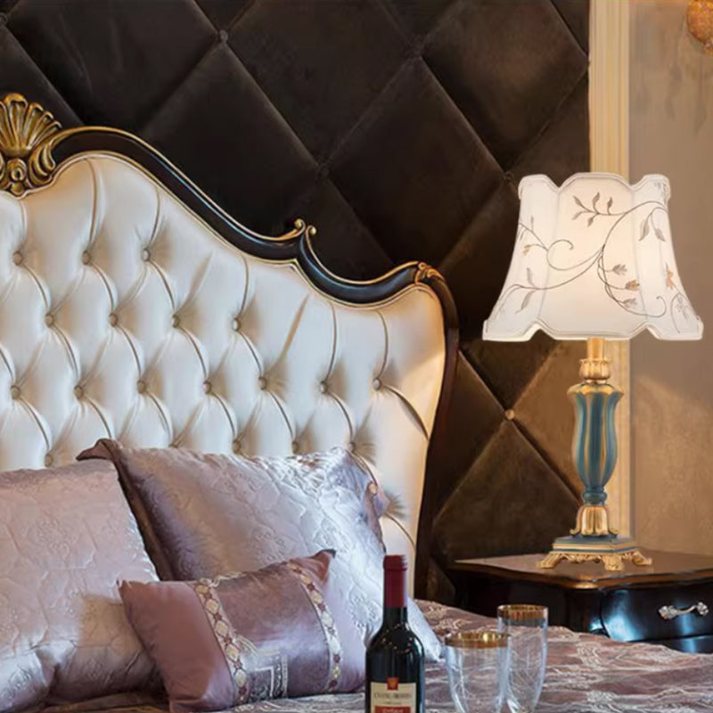 Add a touch of vintage artistry to your home with this table lamp. Featuring an embroidered fabric shade and sturdy resin base, it blends classic design with modern function. Available in turquoise, ivory, and black, it suits any bedroom, living room, or study. The soft white light creates a warm, romantic glow—perfect for reading or relaxing. With a remote control, this classic bedside lamp combines craftsmanship and elegance for refined home decor.