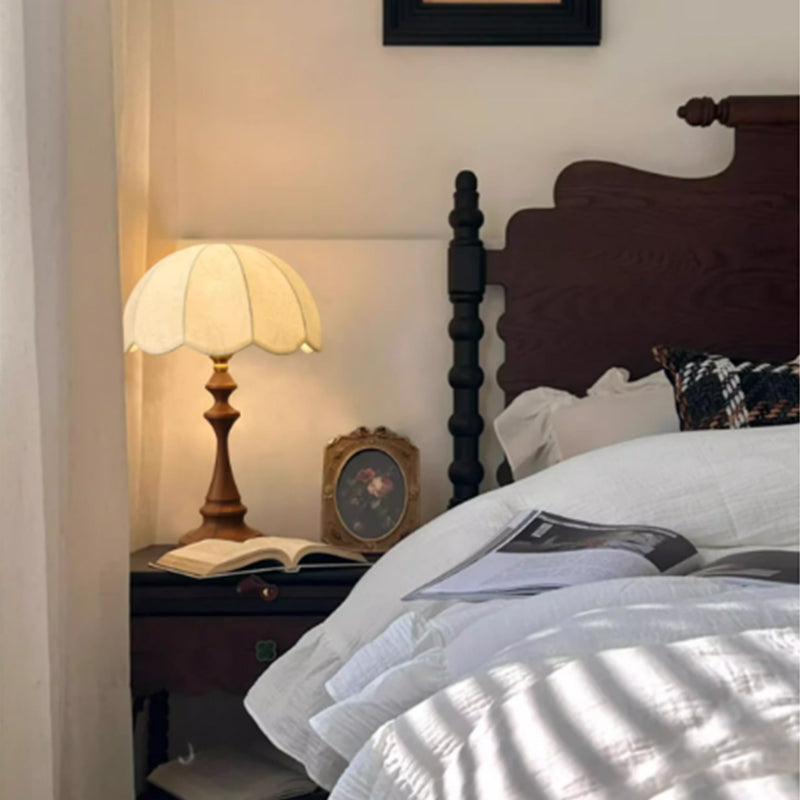 Kochwert Vintage Touch Bedside Lamp – Embroidered Fabric & Wood Base for Cozy Home Lighting
