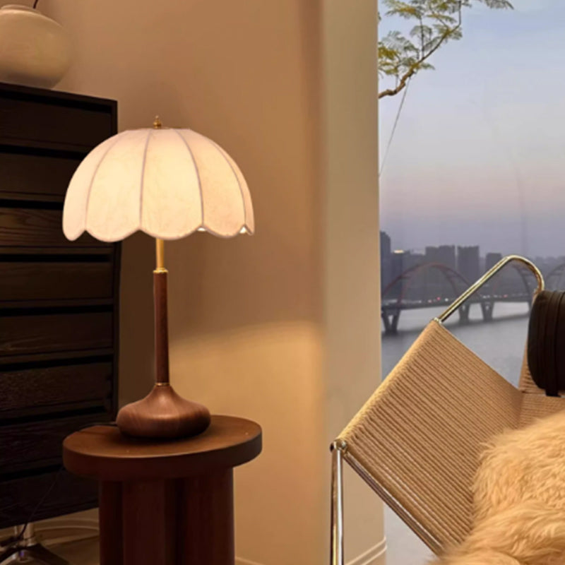 This Chinese retro bedside lamp blends oriental charm with modern minimalism. The embroidered cotton lampshade paired with a solid walnut wood base creates a timeless classic, elevating the style of any home decor.